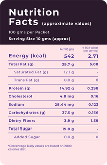 *%RDA calculated as per 2000 kcal energy diet. Values are approximate.